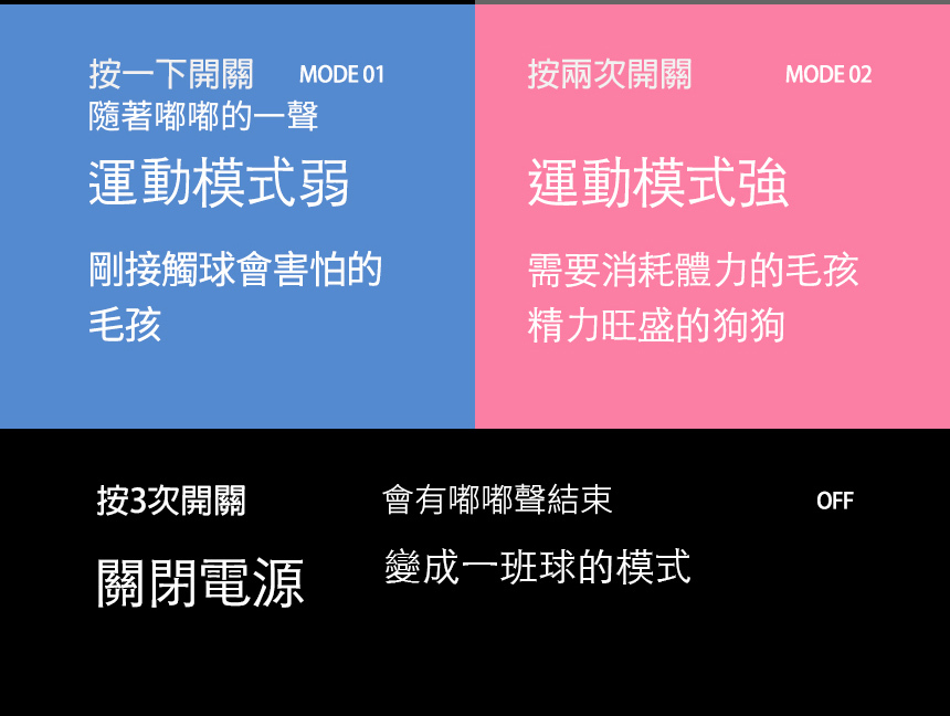 👉球有強弱兩種模式,根據你的毛孩子的體力和興趣進行調節。