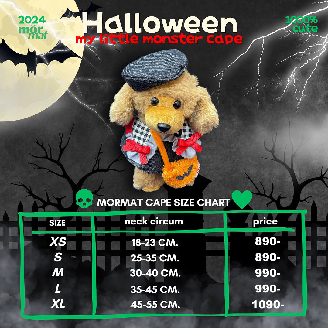 蝙蝠小怪獸披風 共推出 5 種尺寸,並附有同款帽子