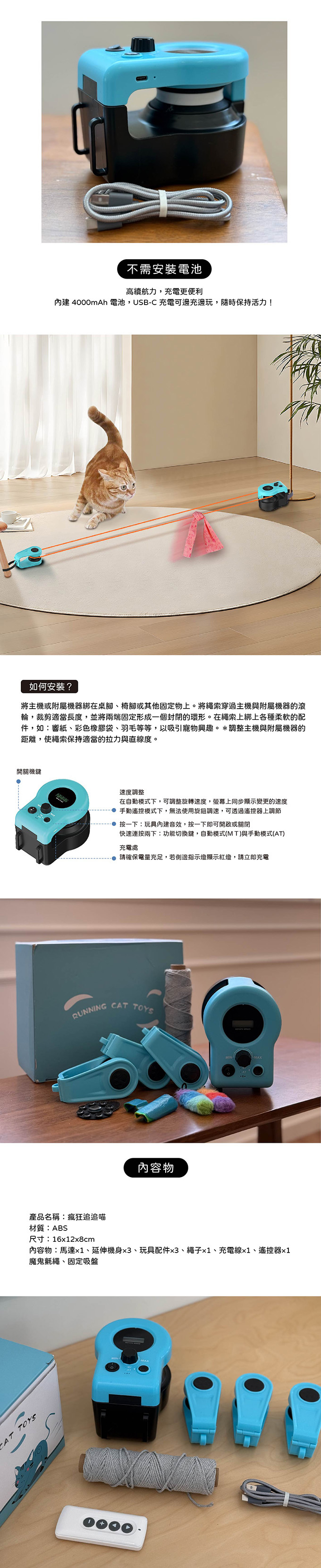 專為貓咪設計的互動追逐玩具「瘋狂追追喵」,透過可組裝結構、可調速度馬達、貓咪最愛的羽毛與塑膠袋配件,打造日常狩獵感,讓毛孩邊玩邊放電、減少無聊與破壞行為。