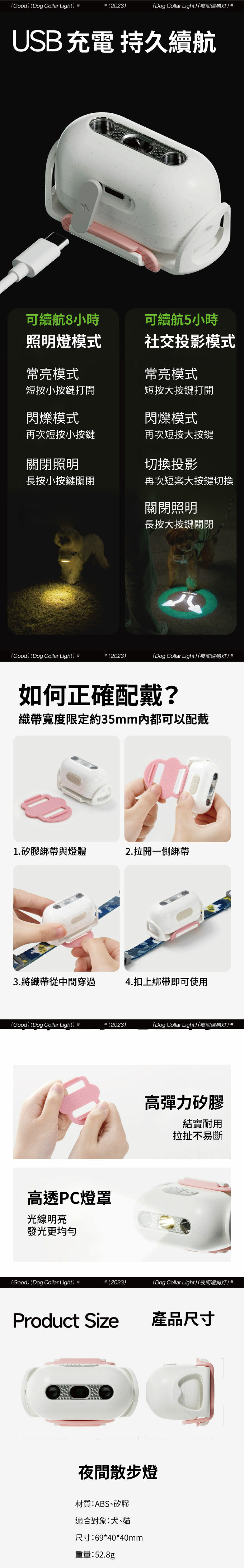 每款散步燈都有長亮白光、閃爍白光、兩款投影圖案